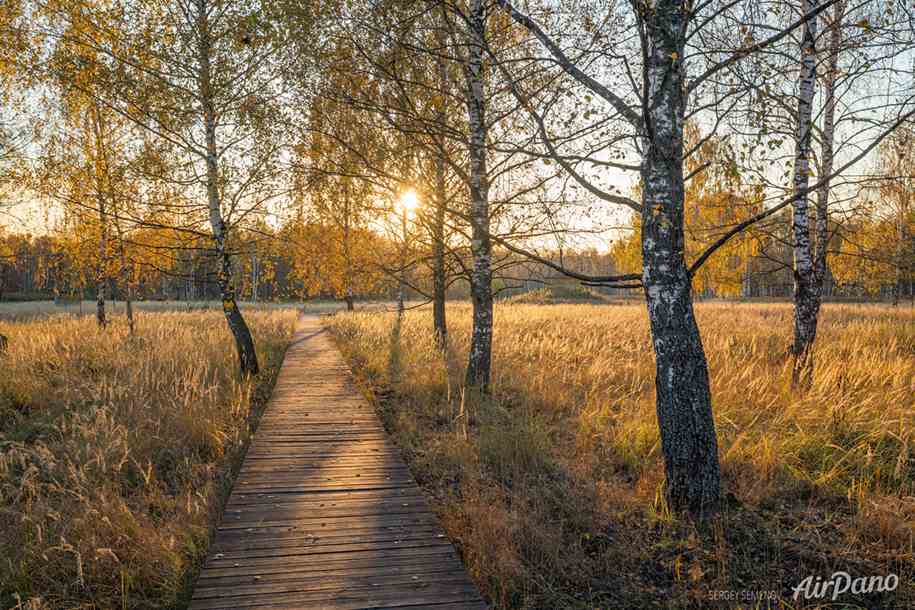 在公园的中心地带,亚乌扎河的洪泛区,坐落着上亚乌扎沼泽地。现在它是一处非常美丽的典型俄罗斯景观:水面如镜,岛屿散落其间,岸边矗立着白桦树和其他树木。这片地区曾经用于开采泥炭,正是这些采矿作业造就了风景如画的水体。